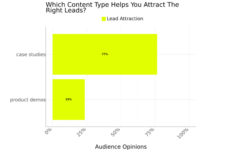 Case studies attract leads by showcasing real success stories, proving credibility, and demonstrating measurable results. Research from the Content Marketing Institute shows that 73% of the most successful content marketers use case studies, aligning closely with the 77% of our audience who say that case studies are the type of content that helps them attract the right leads.